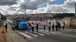 Um grupo de estudantes protesto no início da tarde desta sexta-feira (01) cobrando providências no viaduto do Bairro Guarani, em...