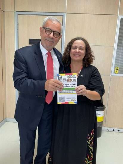Ao lado da Diretora Nacional de Proteção e Defesa dos Direitos dos Animais, Vanessa Negrini, o deputado federal Waldenor Pereira...